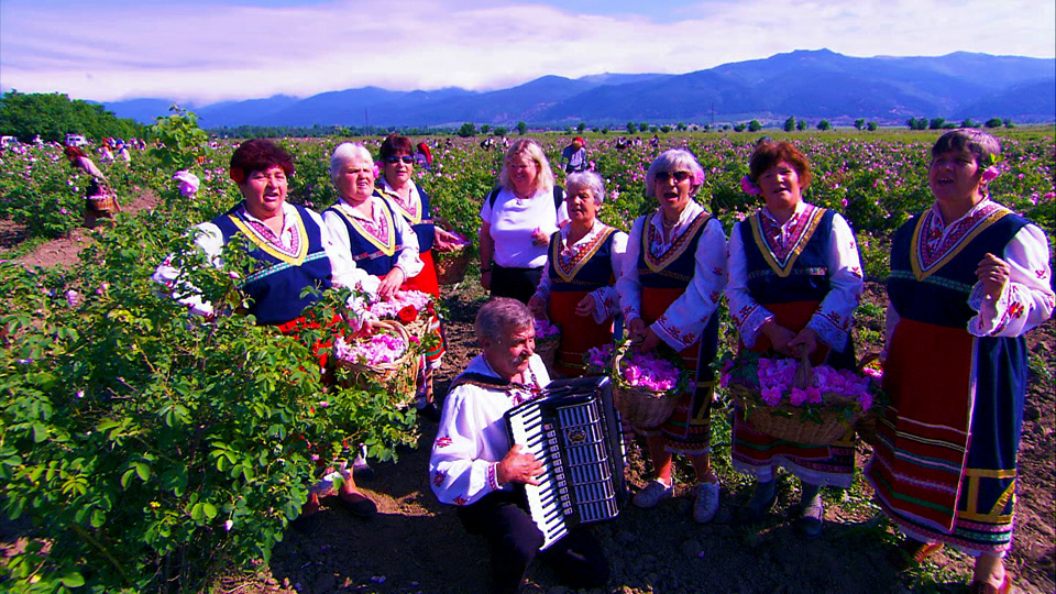 It witnesses the local rituals, the traditional festivities, the truly impressive coronation of the Queen of Roses the rose petals gathering in the fields and the colourful parade along the central avenue of the city of Kazanluk. It smells the fragrance of the three and a half tons of rose petals, which are distilled to produce just one litre of the most famous rose oil in the world.